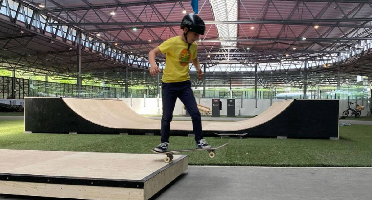 Das Team hat eine Reihe von Hindernissen aufgebaut, darunter Funboxen, Rails und Quarterpipes. Sie hatten jedoch eine besondere Vision für ihren Skatepark: eine Mini-Ramp, die sowohl für intensives technisches Shredden als auch für Anfänger geeignet ist, die ihre ersten Drop-ins ausprobieren.