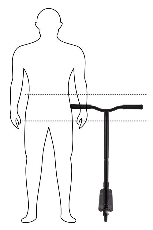Für eine optimale Passform empfehlen wir, den Abstand vom Boden bis zu Ihrer Hüfte und Taille zu messen. Wählen Sie einen Scooter mit einer Lenkerhöhe, die innerhalb dieser Maße liegt, um optimalen Komfort und Kontrolle zu gewährleisten.